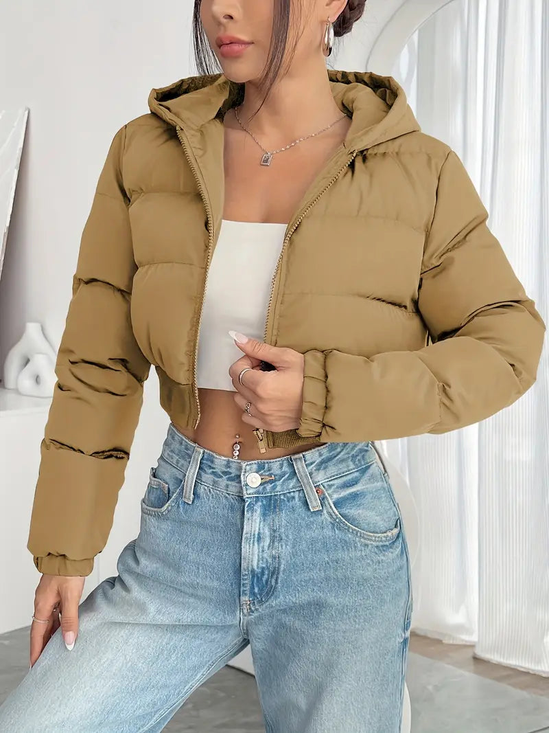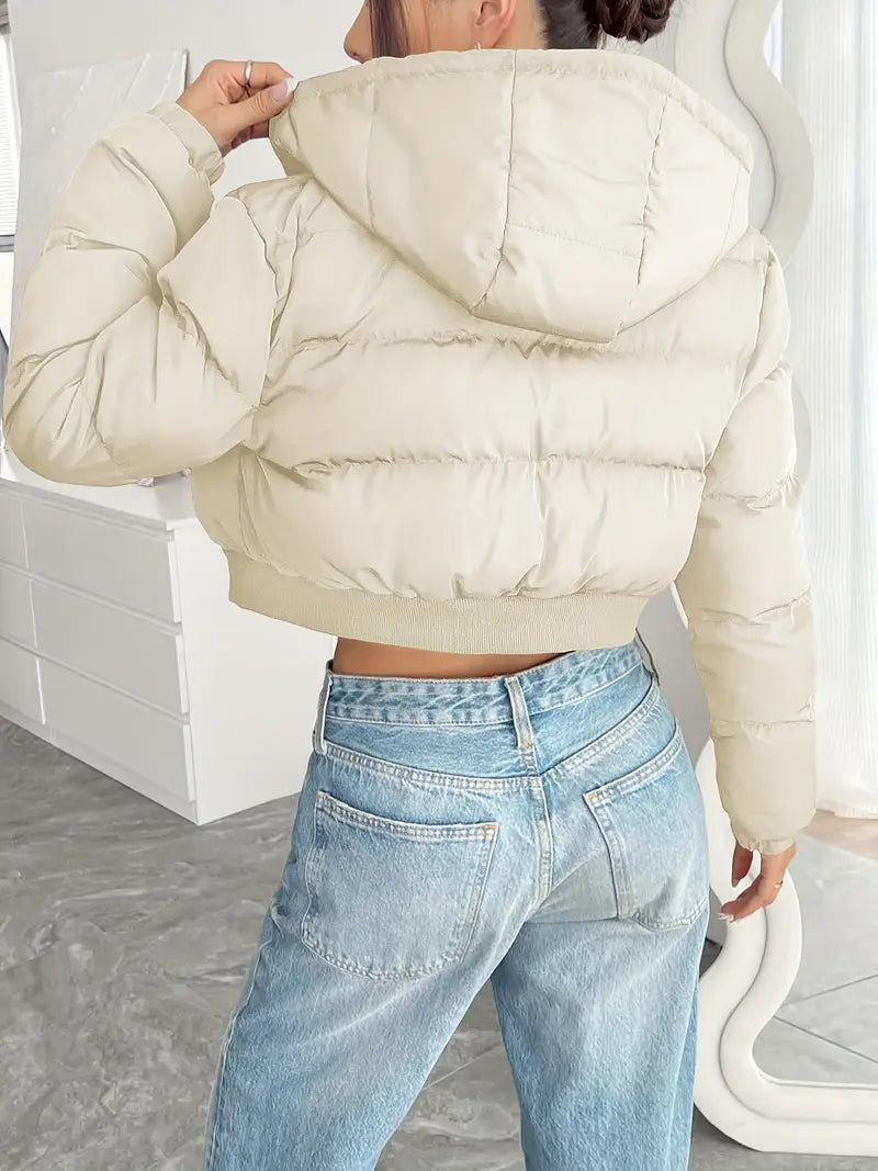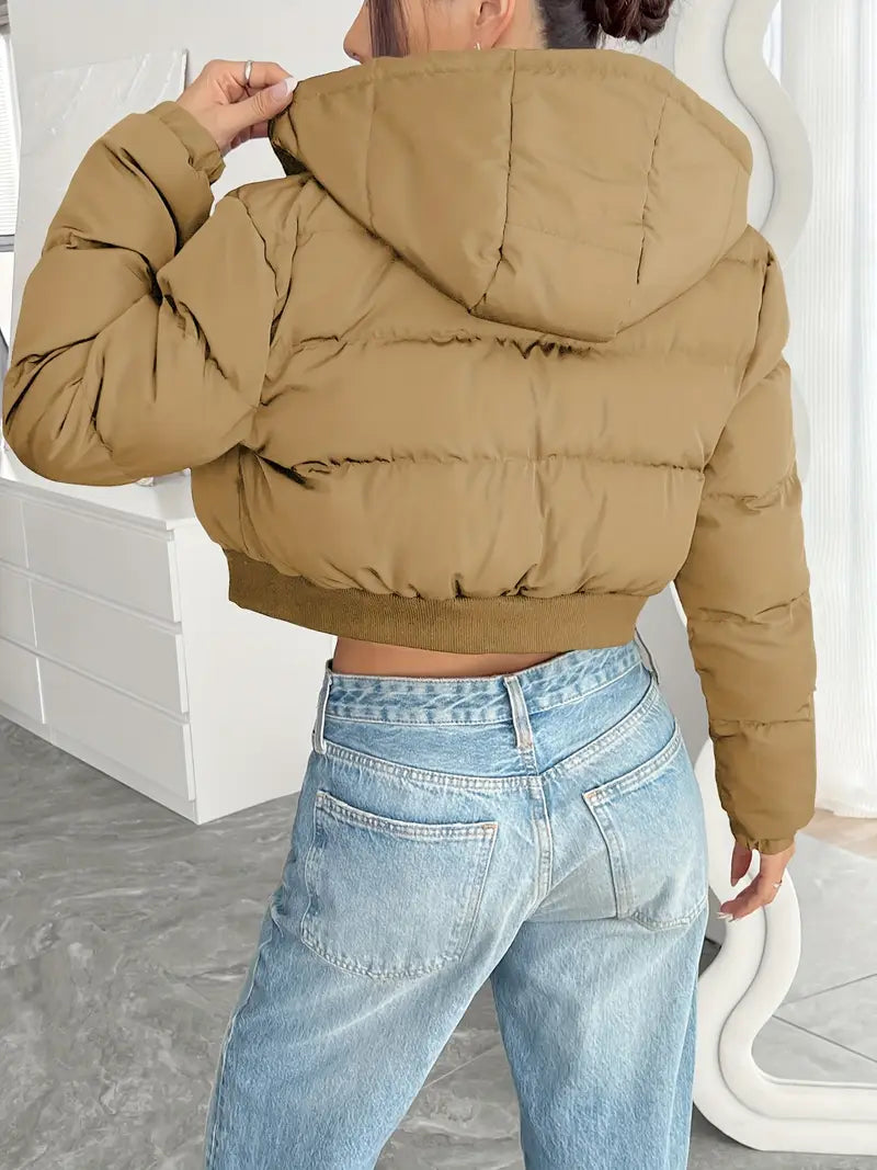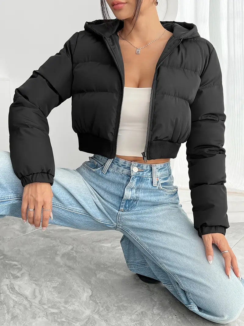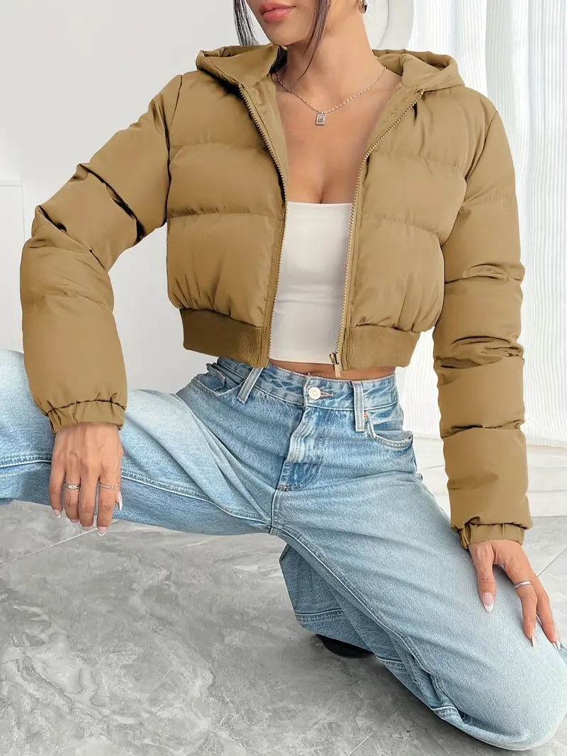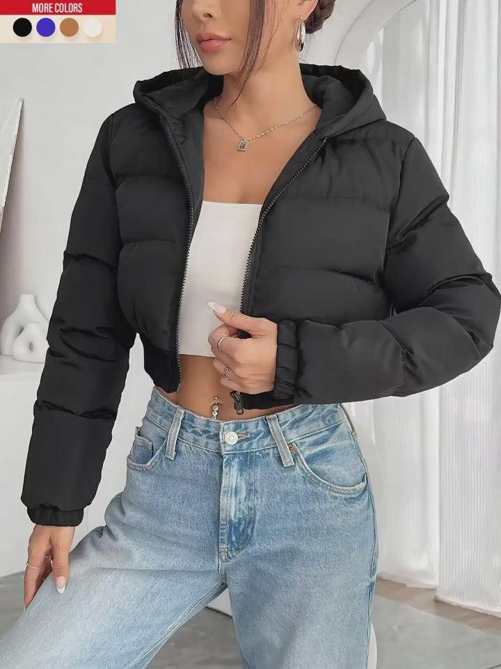 Wyobraź sobie rześki, jesienny poranek, a Ty pewnym krokiem przemierzasz ulice miasta z kubkiem ulubionej kawy w dłoni. Ta kurtka otula Cię niczym miękka, lekka chmurka, dając cudowne ciepło bez uczucia ciężkości. Jej krótki, nowoczesny krój genialnie podkreśla talię i fenomenalnie komponuje się ze spodniami z wysokim stanem, tworząc supermodną sylwetkę. To Twoja nowa, niezawodna towarzyszka na co dzień – od szybkich zakupów, przez spotkania z przyjaciółmi, aż po weekendowe wypady za miasto.
