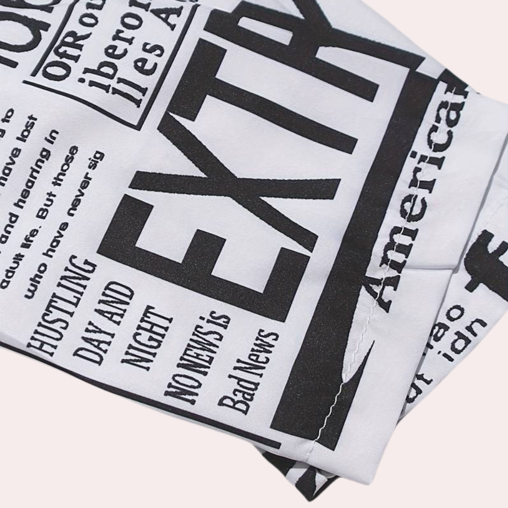 Poznaj sukienkę Antonia Luxe z artystycznym nadrukiem z gazety - modną i wyjątkową kreację idealną do złożenia oświadczenia.
